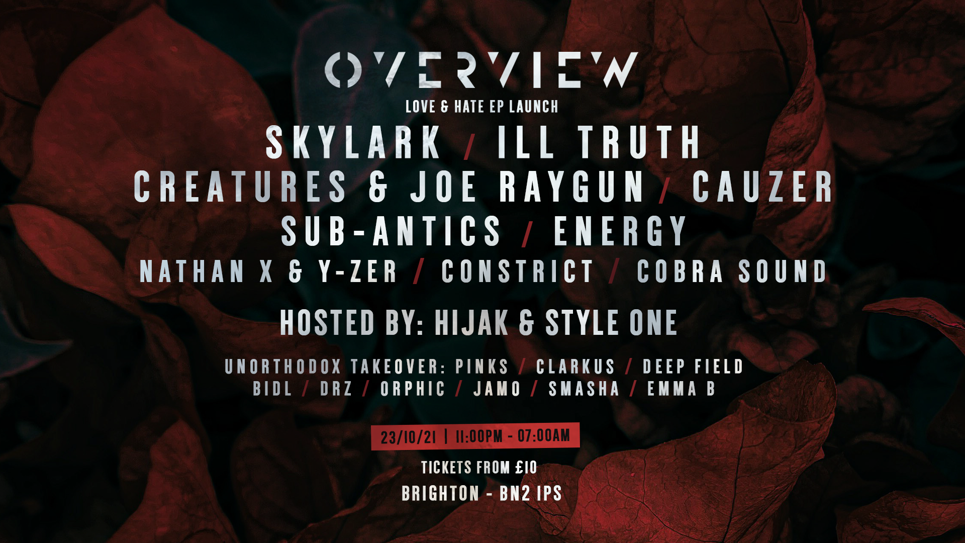 We make our first jaunt down to Brighton for a takeover at Overview Records: Love & Hate EP Launch at The Volks. Get down to catch the takeover with Pinks, Clarkus and Deep Field in the basement as well as main room takeover with Nathan X and the amazing Y-Zer MC!